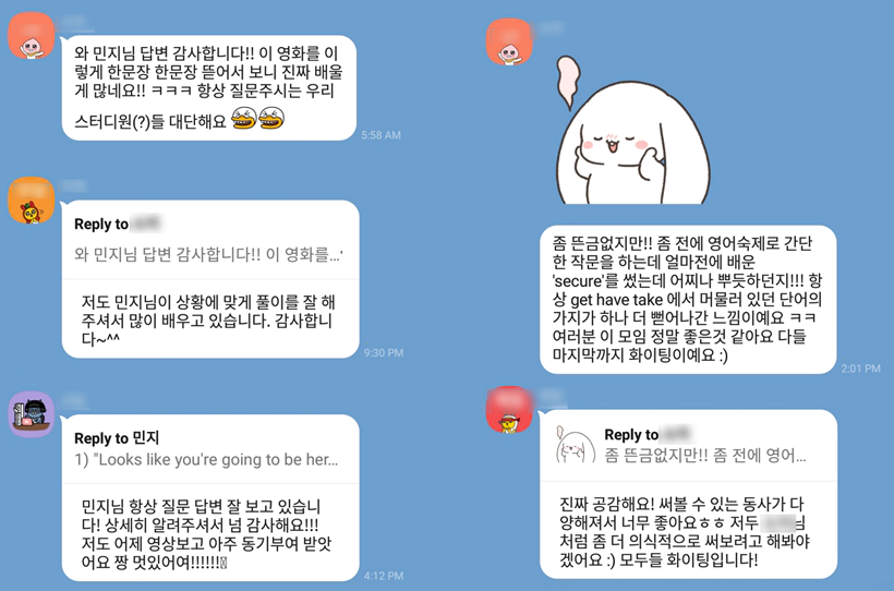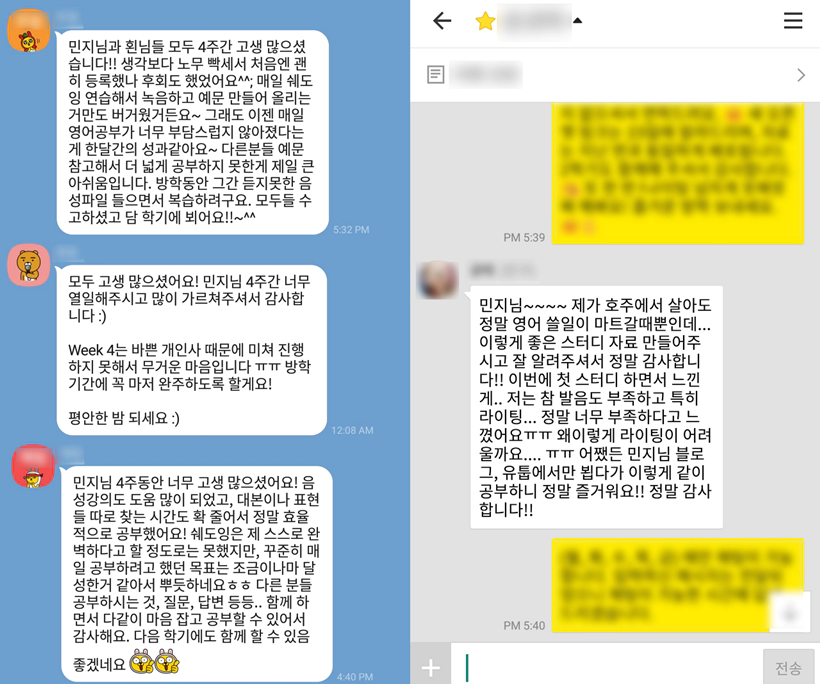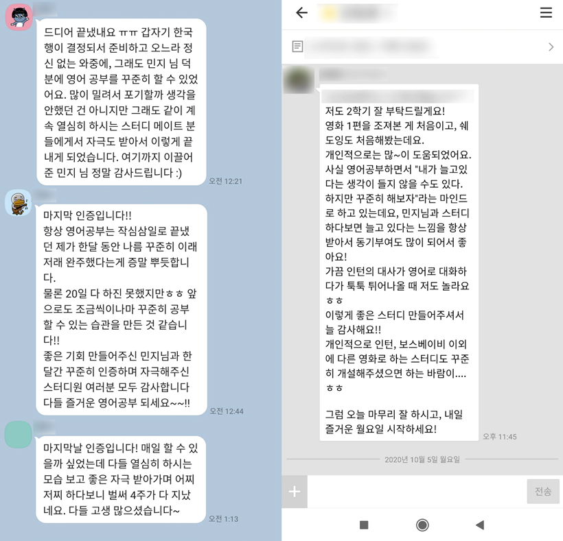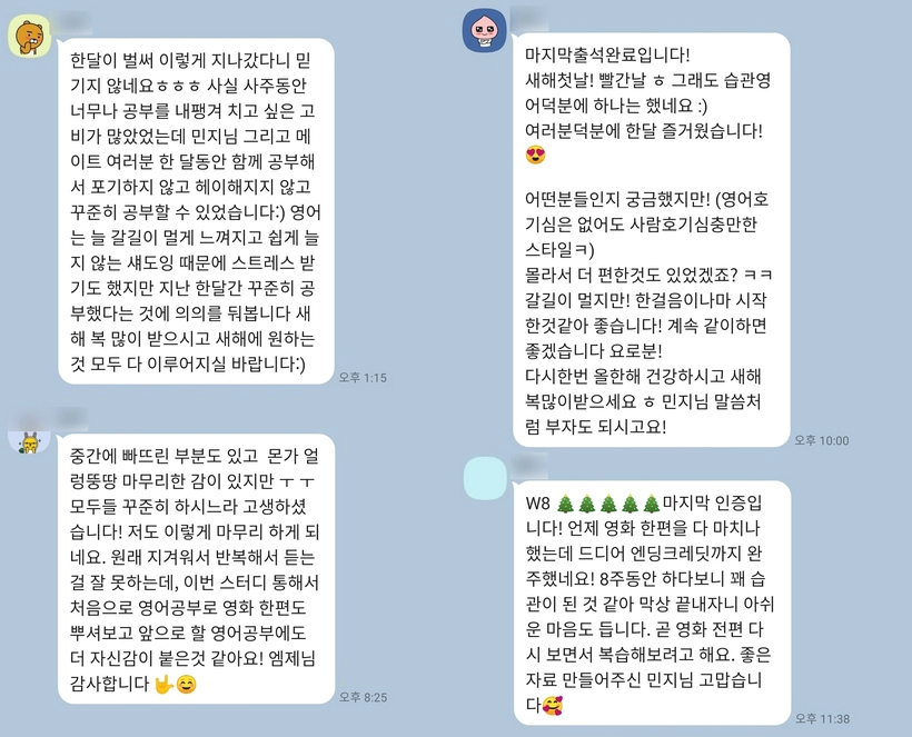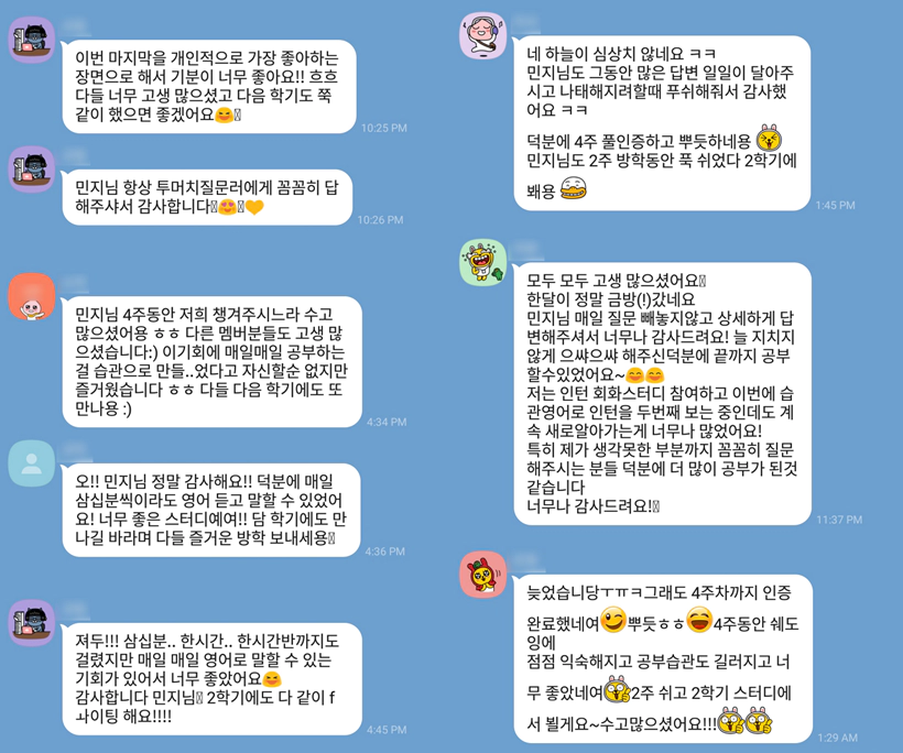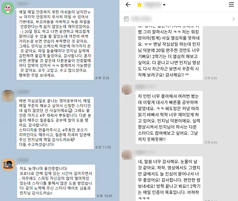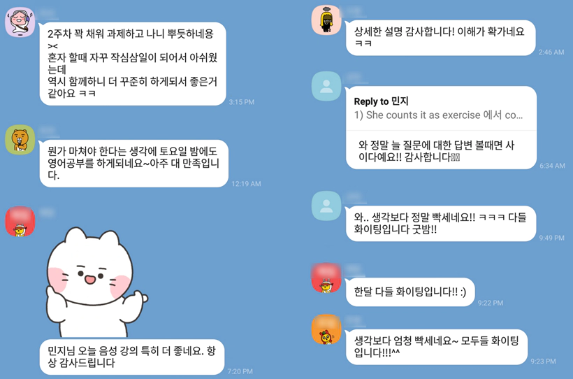 ※ 스카이프 회화 스터디 하셨던 분들도 복습용으로 카톡 습관 스터디 함께 하십니다.