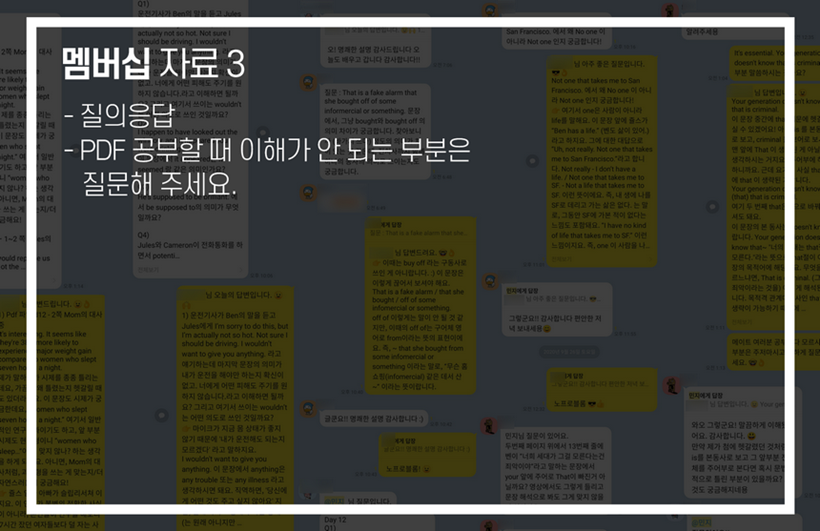 3. 영화를 조금 더 쉽게 공부하실 수 있도록 가이드 자료(음성 강의 포함)와 질의응답을 제공하지만 첨삭은 따로 해드리지 않습니다.