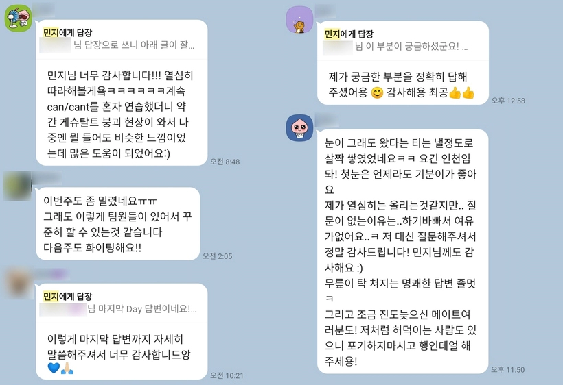 ※ 스터디 메이트분들끼리 서로 응원하고 질문에 의견 나누기도 합니다.