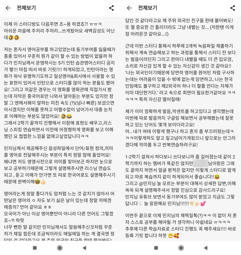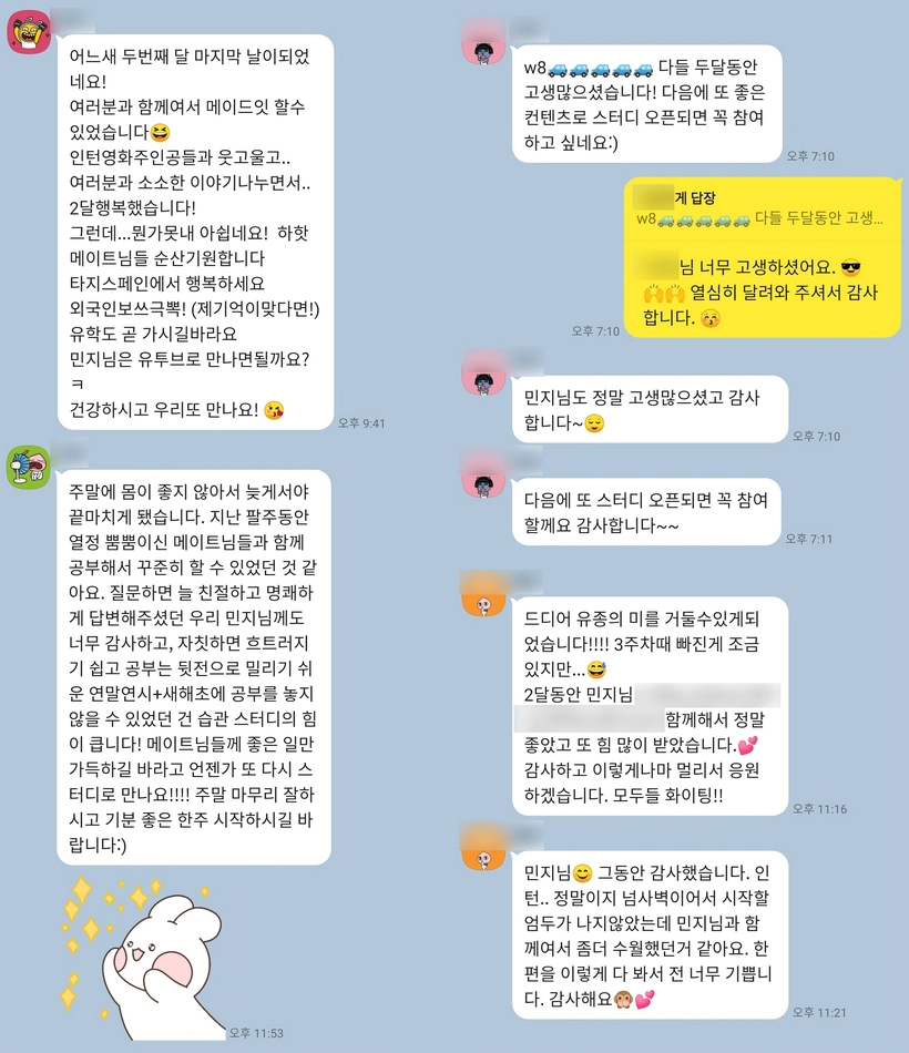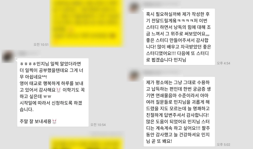 ※ 후기는 스크린샷 합친 거예요. 함께 읏쨔읏쨔 하는 스터디를 지향합니다!